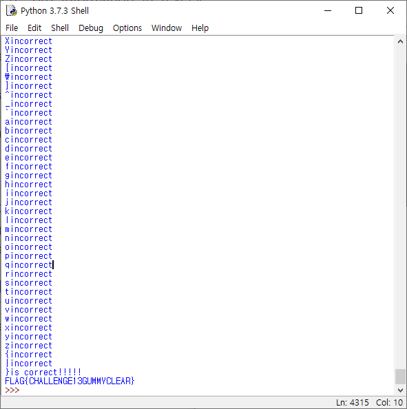 print(chr(j)+"is correct!!!!!")